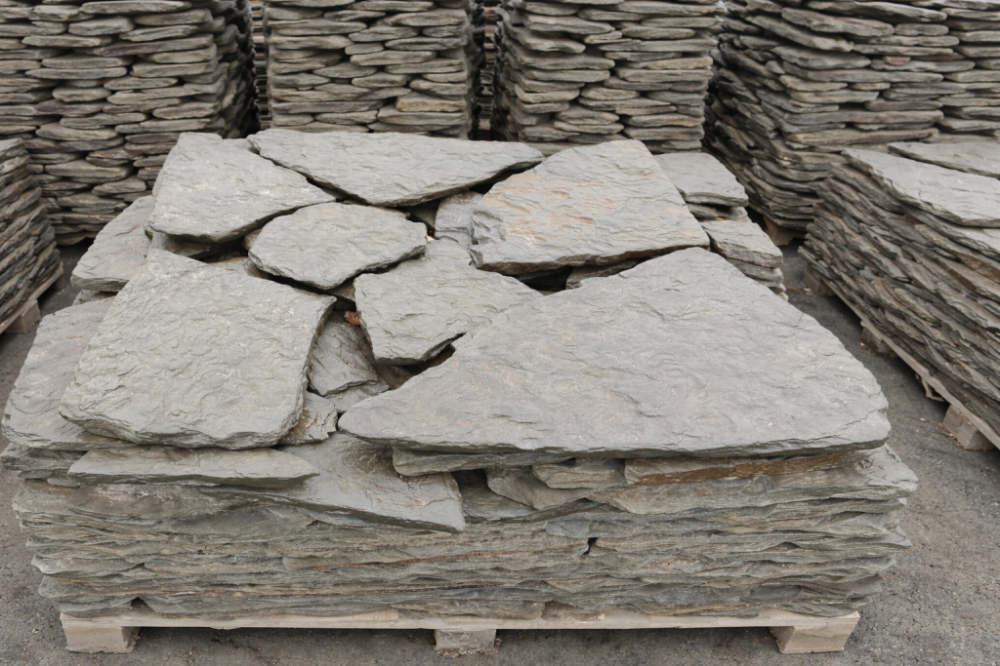 Плитняк песчаник дракон серо-зелёный галтованный для облицовки цоколя, отмостки 20-35 мм